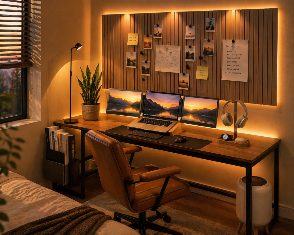 Clean Masculine Home Office Setup | Minimal Natural Workspace Design clean workspace cozy office setup